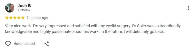 Dr. Soler performs blepharoplasty under general anesthesia. Depending on your goals, he can perform upper or lower eyelid surgery or both. Here is his process for eye lift surgery in Tampa: